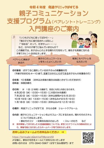 次回の親子コミュニケーション支援プログラム(ペアレントトレーニング)入門講座は、2023年1月25日(水)13:30~15:30 です。 (※下のポスターでは1月18日となっていますが、正しくは1月25日です!) まだお席に余裕がありますので、ぜひご参加く…